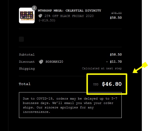MTHRSHP MEGA: CELESTIAL DIVINITY is $78 with the 25% off it is $58 but add the SOSORRY20 code and it comes down to $46!
