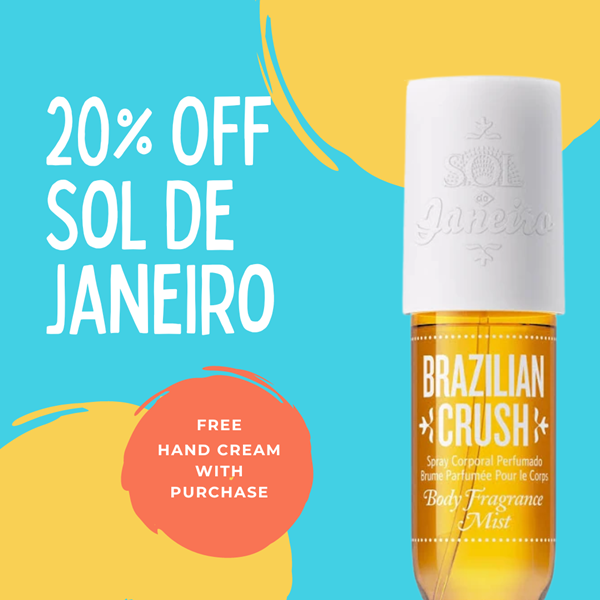 Hurry, hurry, hurry and grab 20% off your Sol De Janeiro (must spend $35) plus get a free hand cream with your purchase! No code needed, the discount is reflected at check out. The code works on new arrivals but not bundles!