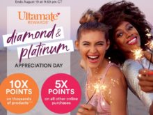 Ulta Diamond and Platinum Appreciation Day 2019 10x to 5x Points + Free Shipping On Any Purchase